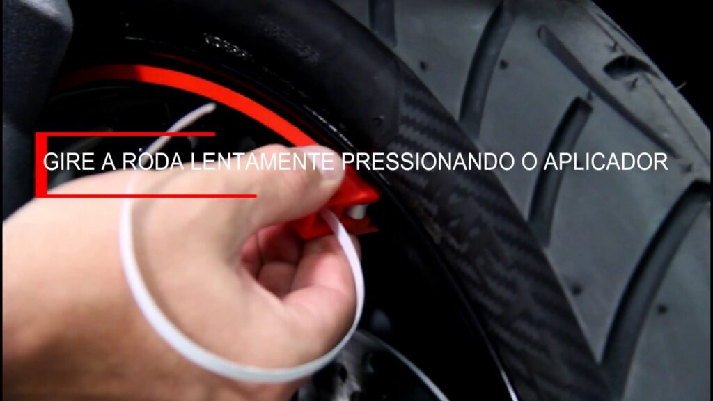 Você mesmo pode aplicar os frisos em sua moto. Utilizando o aplicador incluso, fica fácil a instalação do friso na roda.